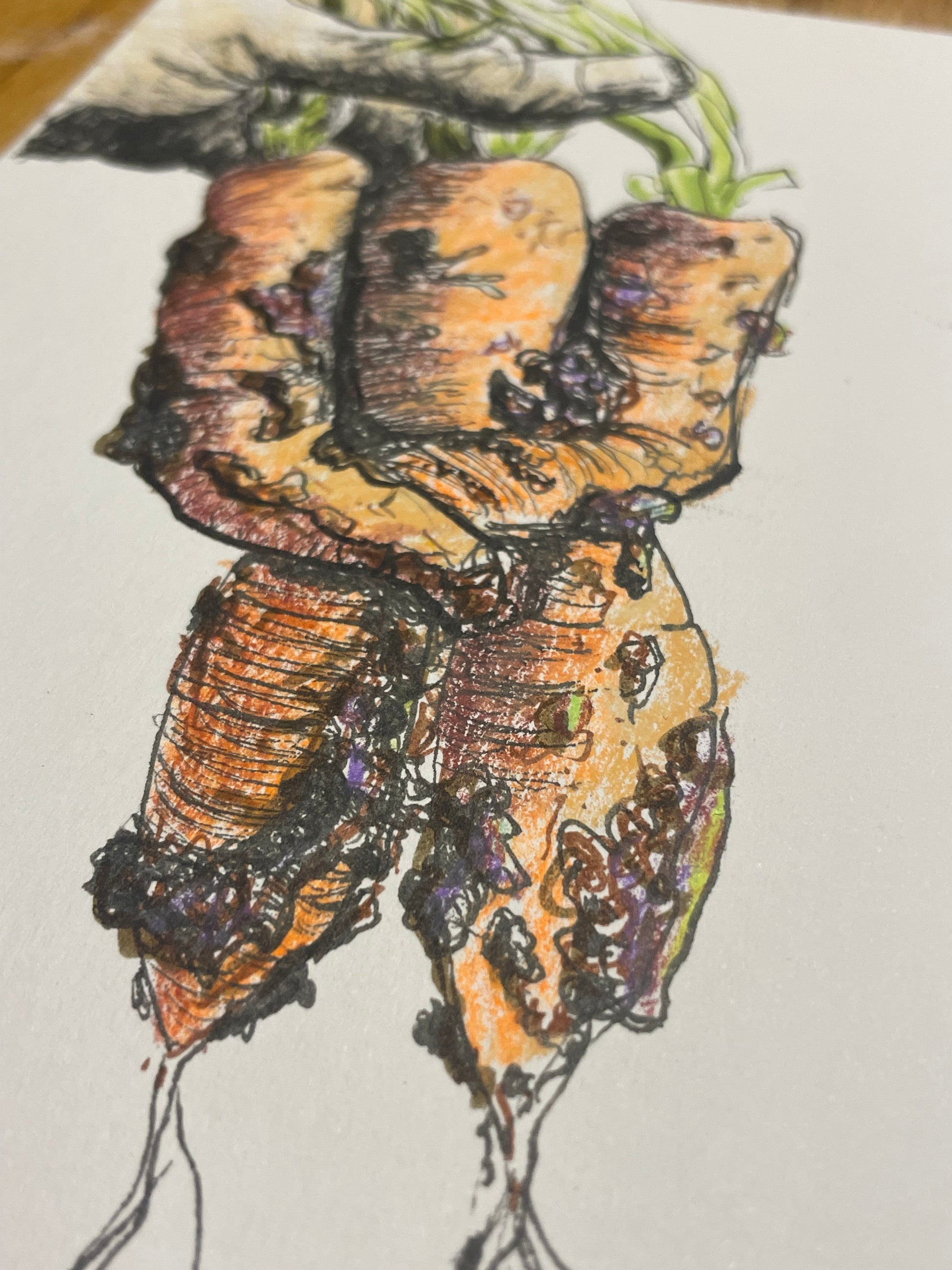 Colored pencil + ink sketch on 5x7” drawing paper.